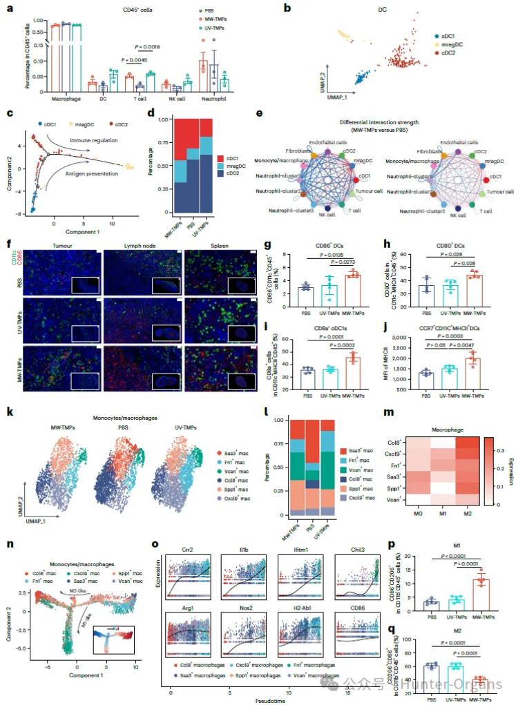3. MW-TMPs激活树突状细胞来增强抗原呈递,并在肿瘤微环境中重新编程TAM,为抗肿瘤表型
