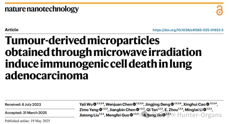 Yali Wu, Wenjuan Chen, Yang Jin et al. Tumour-derived microparticles obtained through microwave irradiation induce immunogenic cell death in lung adenocarcinoma. Nat. Nanotechnol.2025. DOI: 10.1038/s41565-025-01922-3