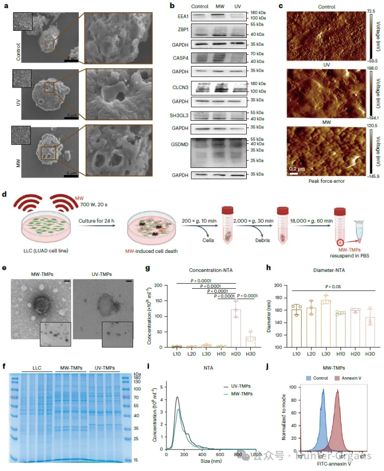 • 提出一种全新的基于微波辐射的TMPs制备方法——MW-TMPs,利用微波辐射替代传统的紫外线辐射来诱导肿瘤细胞释放TMPs,操作简便、效率高,显著提高了TMPs的产量和生物安全性;